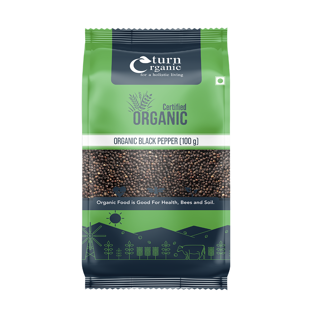 Turn Organic Black Pepper Corns are organically grown without harmful chemicals and pesticides. Turn Organic Black Peppers are steam sterlized to retain the aroma. Turn Organic Black Pepper Corns are rich source of Antioxidants, Minerals & Vitamins. It also has high content of dietary fiber and moderate amount of protein and carbohydrates. It aids in cleansing of your intestines, stomach and detoxifies your body.