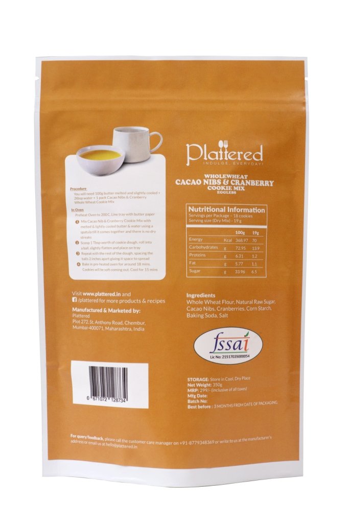 Whole Wheat Flour, Natural Raw Sugar, Cacao Nibs, Cranberries, Corn Starch, Baking Soda, Salt