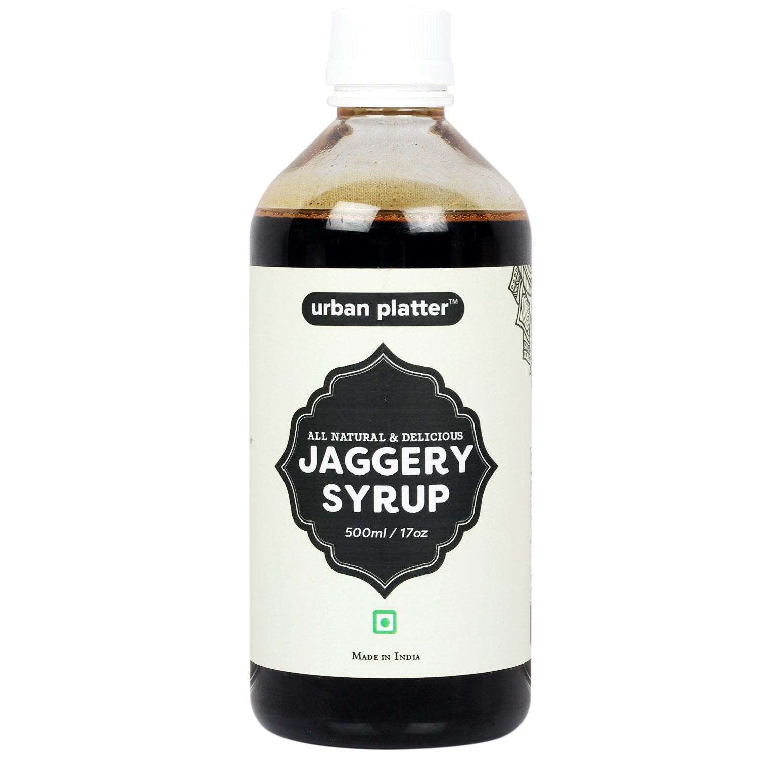 Urban Platter Jaggery Syrup, Ayurveda Recommends use of Jaggery as preferential sweetener than Sugar as it has many Nutritional benefits. Contains Cane syrup, Concentrated Sugarcane juice and permitted class II preservative. Important source of folic acid, it acts as a digestive agent, rich source of many vital minerals like iron, magnesium, phosphorus, potassium that are required by the body for normal growth and functioning.