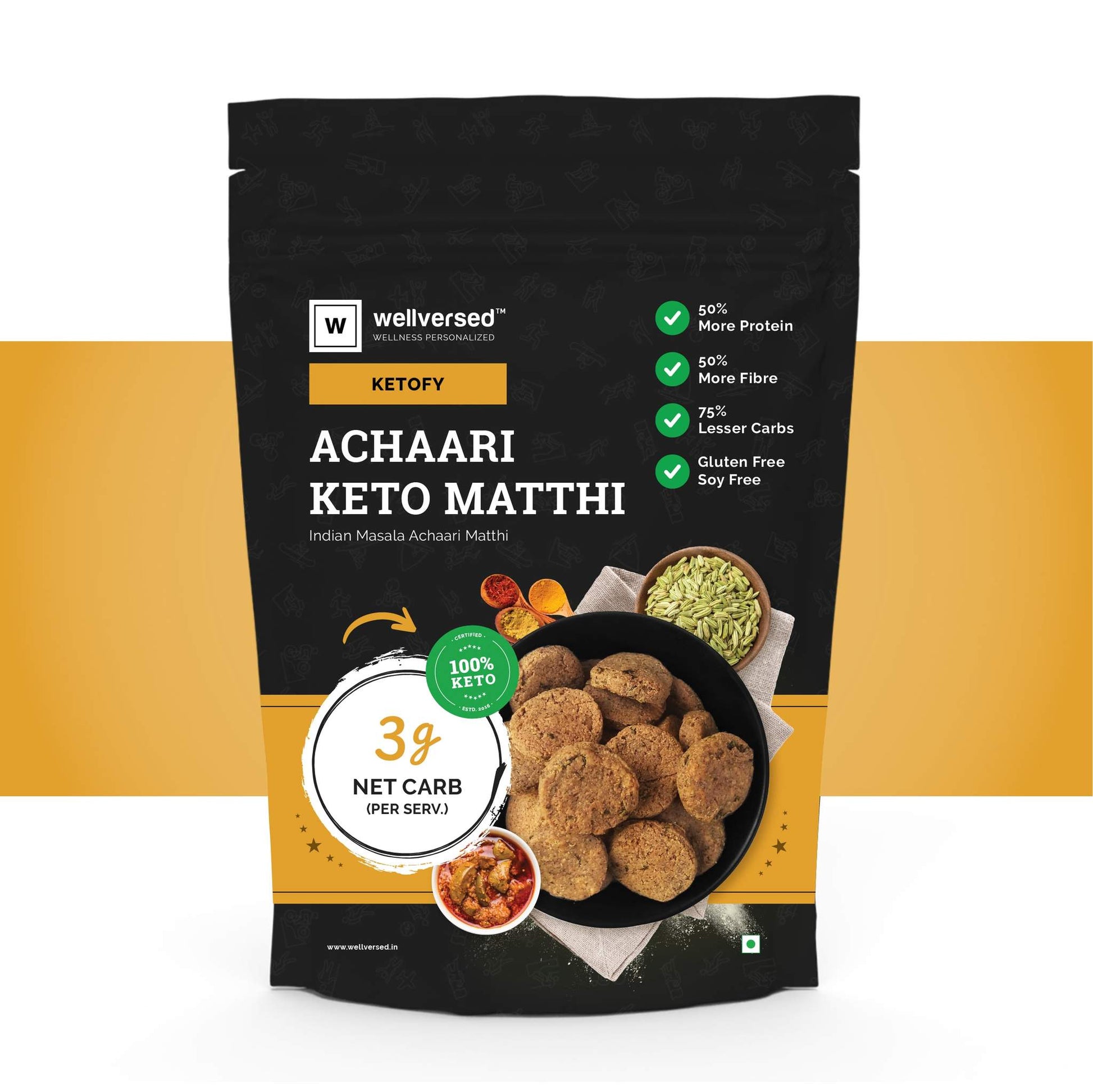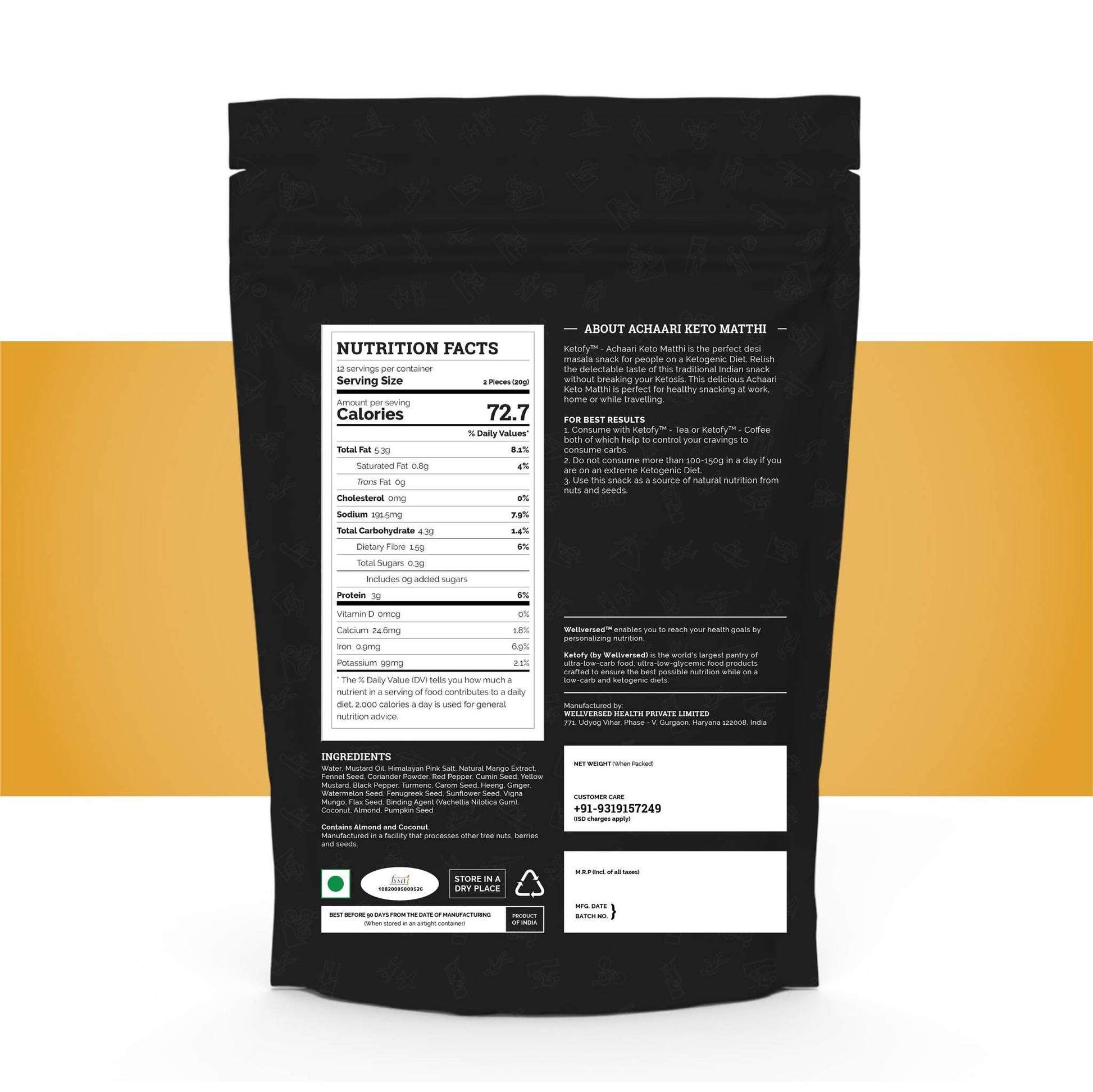 Ketofy Achaari Matthi is a Rajasthani snack which has been specially curated to provide you the healthier keto version of the popular snack. It provides you a desi taste of traditional spices with a crispy edge.