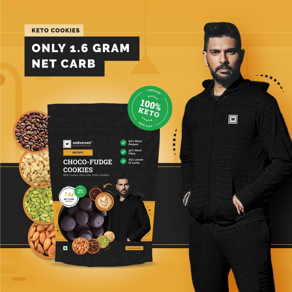 Ketofy Choco Fudge Keto Cookies, a healthier and tastier alternative to your cookie cravings, have been created from all-natural ingredients like almonds, chia seeds, sunflower seeds, flax seeds, psyllium husk, coconut, and watermelon seeds. These ingredients are naturally rich in proteins, healthy fats, vital vitamins, minerals, and anti-oxidants.