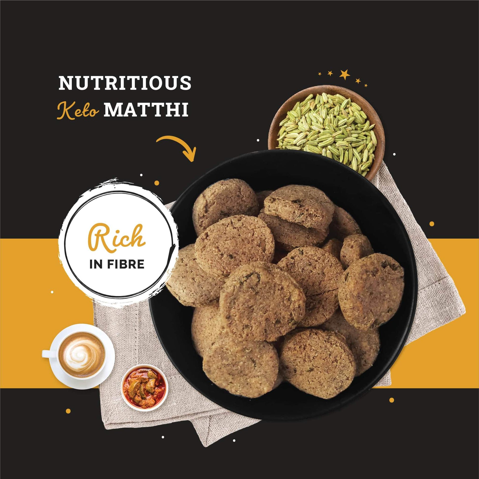 Ketofy - Keto Matthi have the perfect macros for an ideal Keto Diet : Low Net Carbs, High Fat and Moderate Protein along with essential Vitamins and Minerals like Vitamin A, Vitamin C, Magnesium, Calcium, Niacin, etc.