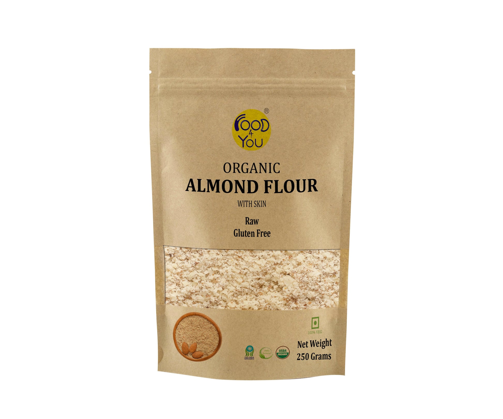 Organic Almond Flour With Skin: This is a Vegetarian product. Almond Flour is Used in puddings, kheer, sweets, badam-katli, grain-free baking mixes, in muffins, in baking cookies etc excellent to give almond profile to your products.