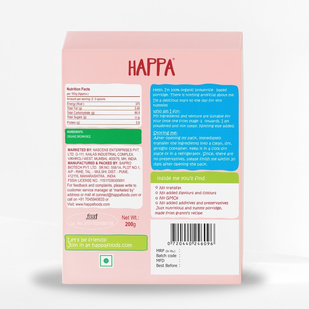 100 % ORGANIC: Made with organic wholegrains - organic brown rice. Special Features: No preservatives, no artificial colors, no artificial flavors. All ingredients are selected and sourced carefully keeping in mind their health benefits to your babies. The germination process in Brown Rice is known to multiply the levels of Gamma-Aminobutyric Acid (GABA), a neurotransmitter that strengthens the central nervous system. Sprouted Brown Rice is known to have high levels of Manganese, an essential mineral for bone health and nutrient metabolism.